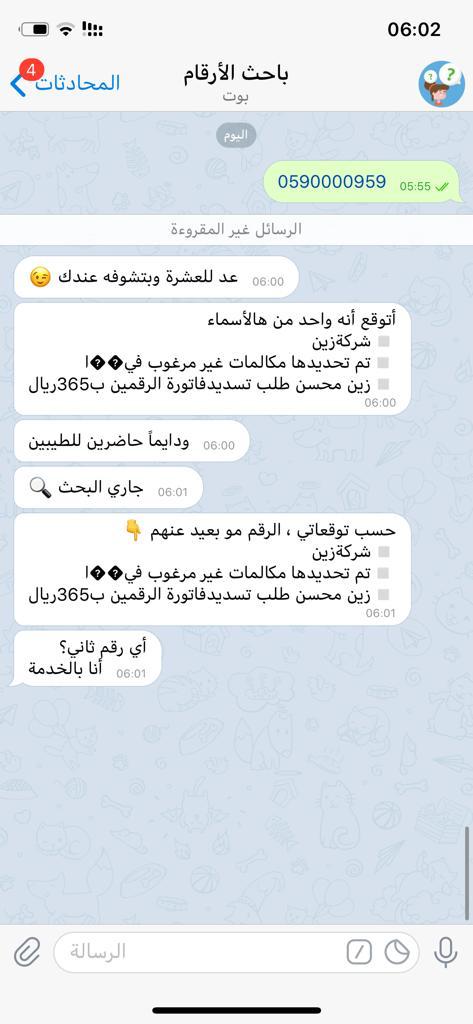 البوت هذا تقوم باعطائه رقم جوال ويقوم بالبحث عن اسم صاحبه وجميع الأسماء من برامج النمبر بوك