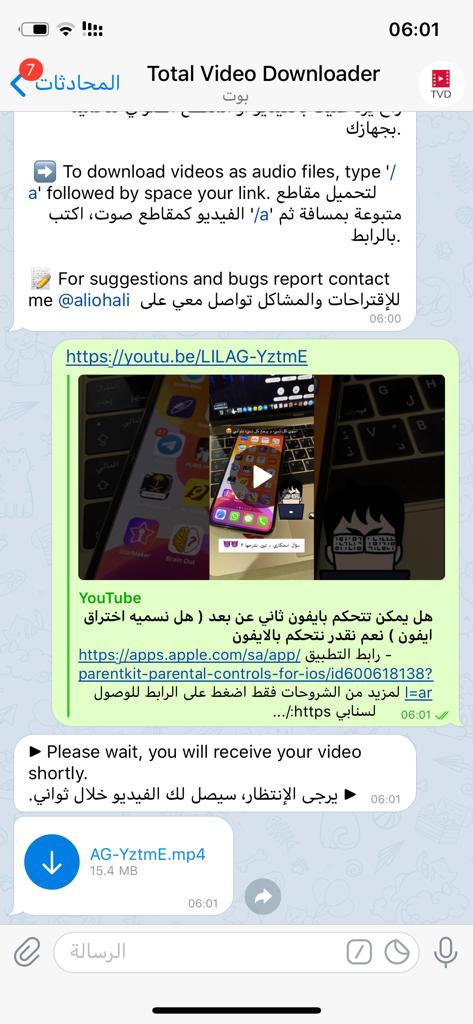 تقوم بنسخ اي رابط يحتوي على فديو وترسله للبوت ويقوم هذا البوت بإعطائك رابط مباشر لتحميل الفديو