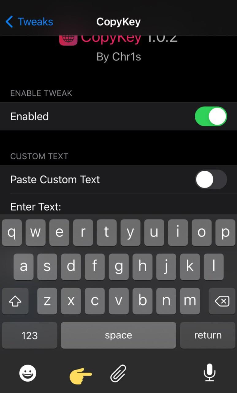 تصيف لك زر لوحة مفاتيح جديدًا للوحات مفاتيح نمط iPhone X للصق النص بسرعة. أو اختر نصك المخصص للصقه.