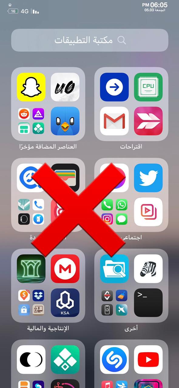 اخفاء التطبيق من الشاشة الرئيسية واظهارها فقط عند البحث عنها بالسحب على الشاشة للاسفل