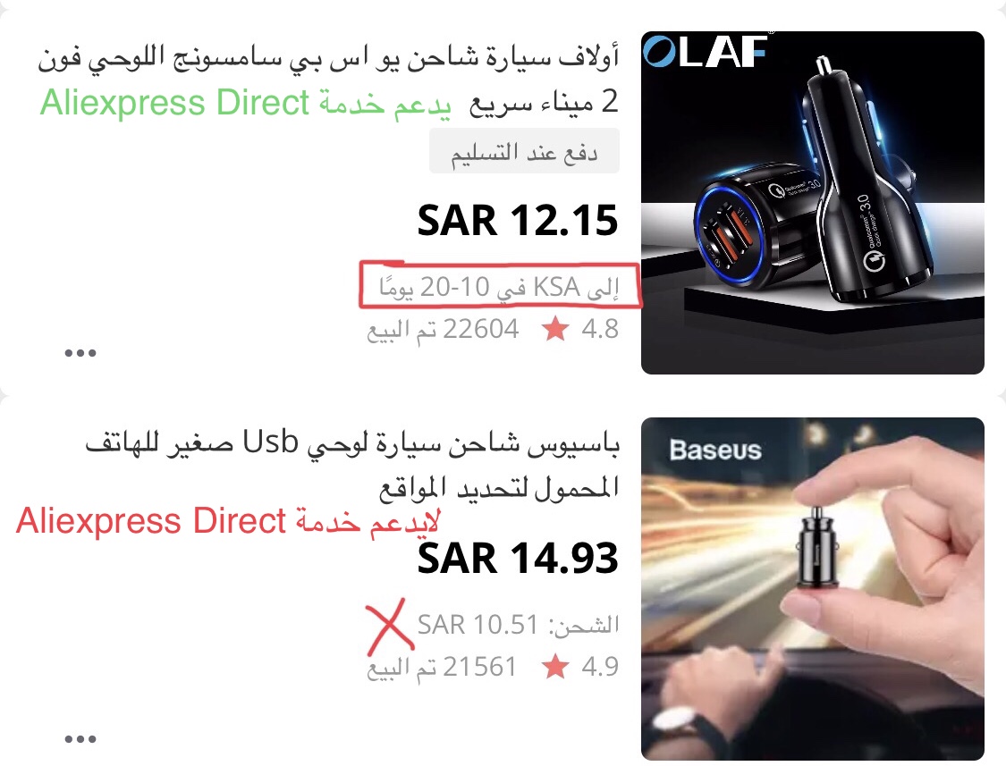سعرها موحد 8 دولار لكل منتج أو اذا كملت 90$ دولار ما يعادل 347 ريال يكون الشحن مجاني حتى لو حطيت اكثر من منتج بشرط كلها تدعم خدمة AliExpress Direct وتجيك كلها في شحنه واحدة تشحن من شركة Aramex وممكن شركة شحن اخرى اللي هي IQS أو شركة ناقل