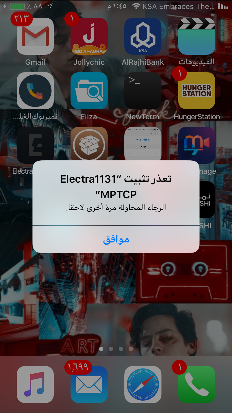 الإستفسارات 10831 السلام عليكم اخواني حذفت برنامج اليكترا اللي من خلاله يتفعل الجلبريك وادخل السيديا وارجع احمله يرفض نوع الجهاز: iPhone 6 اصدار الجهاز: 11.2.5 صورة توضيحية للسؤال: الجواب: يوجد ضغط على سيفرات التحميل حاول مرة اخرى لاتنسى تقييم الاجابة تمت الإجابة منذ 8 سنوات 0 0