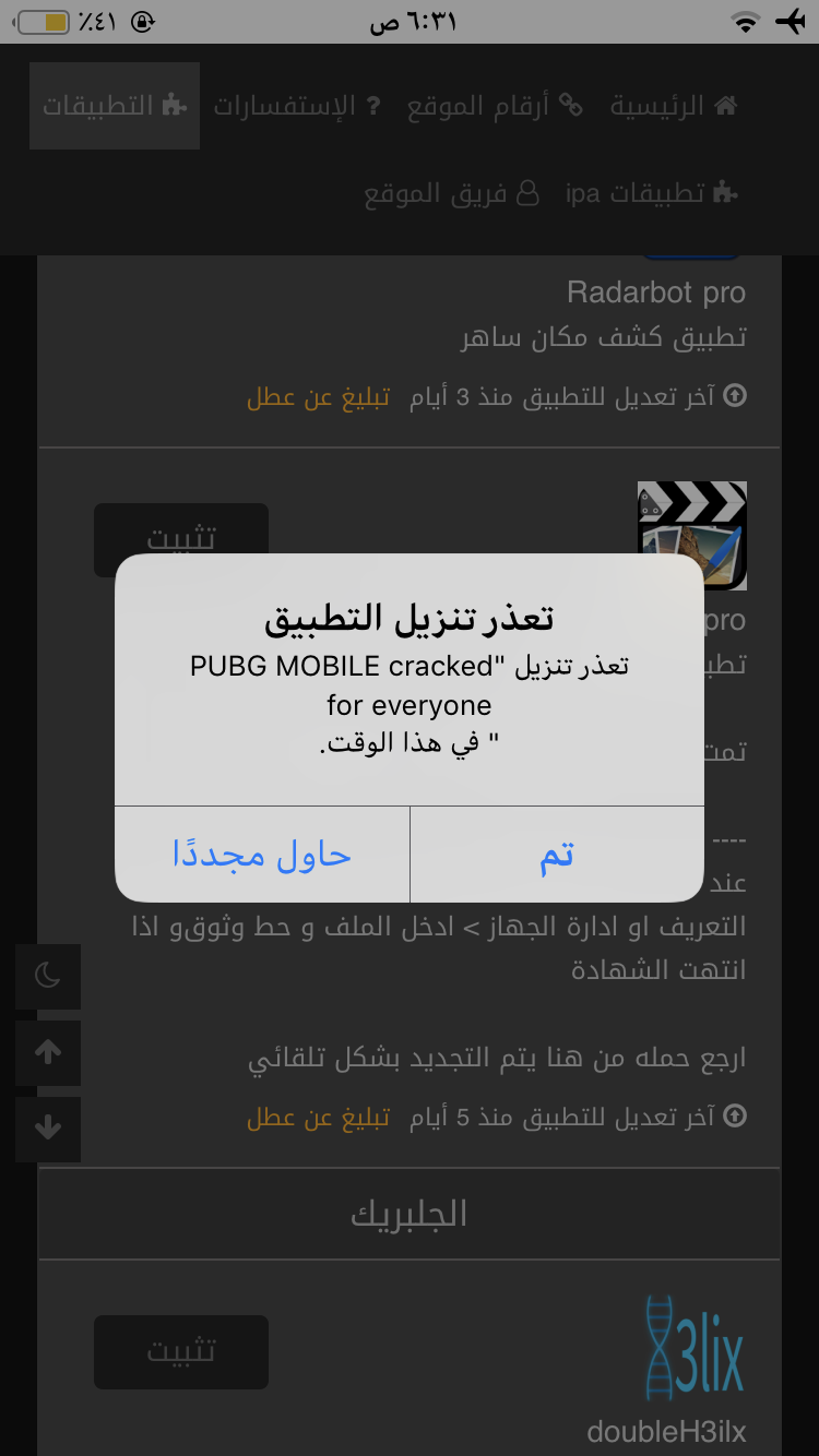 الإستفسارات 17076 هل لعبة ببجي هاك موقفه حالياً ولا في مشكلة عندي لانها رافضة تتحمل نوع الجهاز: ايفون ٧ اصدار الجهاز: ١٢.١ هل الجهاز يحتوي على جيلبريك؟: لا صورة توضيحية للسؤال: الجواب: تفضل قم بتحميلها من هذا الرابط http://corneey.com/wZZis0 http://corneey.com/wZZis0 تمت الإجابة منذ 7 سنوات 1 1