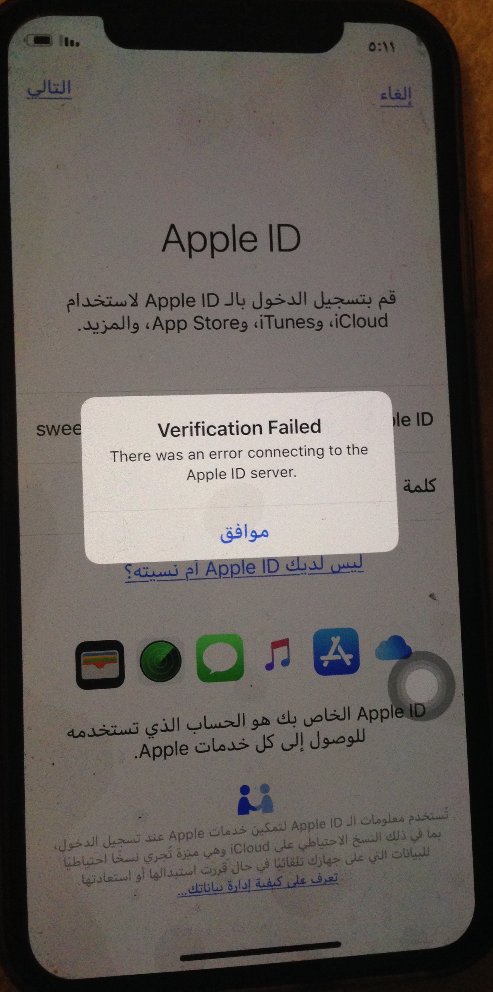 17241 السلام عليكم .. جوالي أيفون اكس أمس من نفسه علق وقفلته وم انفتح ع طول والحين م يدخل بالابل ايدي يعطني نفس الي بالصورة مع أني غيرت أكثر من ثلاث شبكات ونفس المشكلة وحافظة الايميل والرمز السري وش الحل