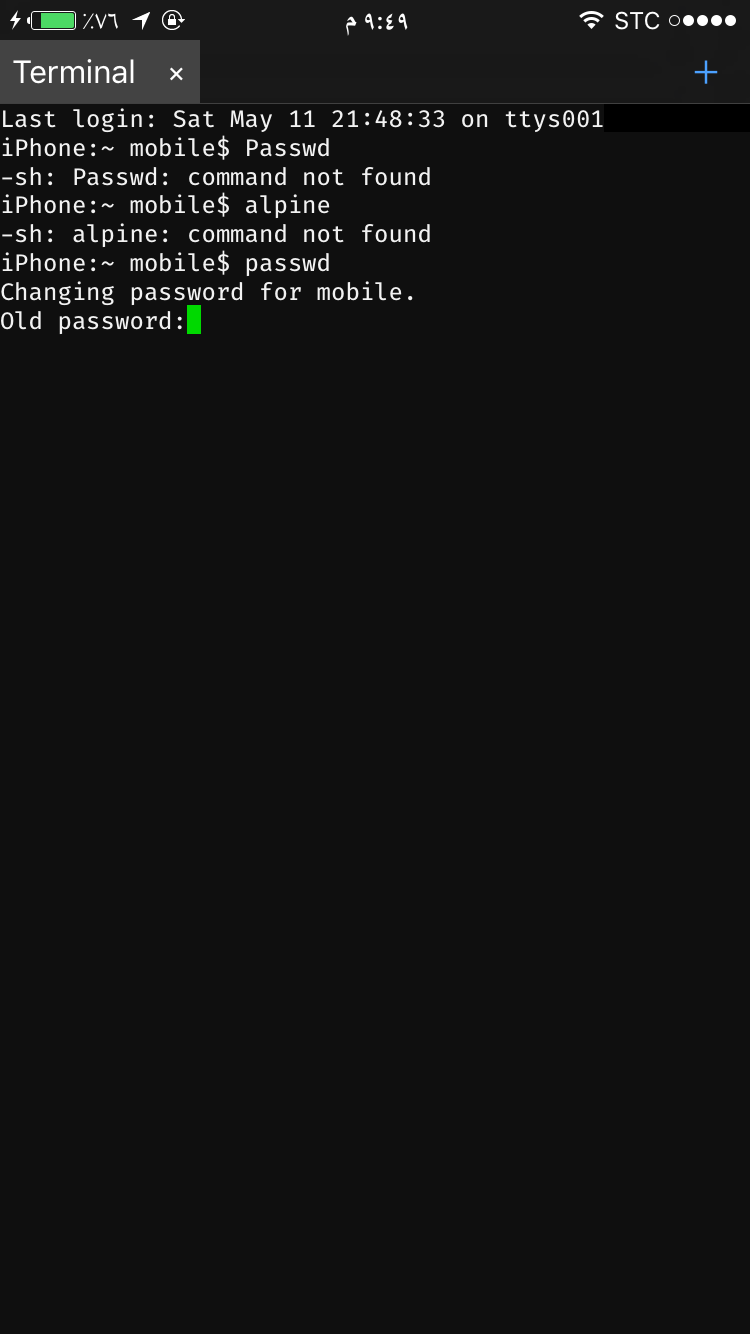 الإستفسارات 21181 حملت اداة newterm واتبعت الطريقة ولكن عند مايطلع passrwd ماعاد يكتب الكبيورد ابد نوع الجهاز: ايفون ٦ اصدار الجهاز: 10.1.1 هل الجهاز يحتوي على جيلبريك؟: نعم صورة توضيحية للسؤال: الجواب: نعم صحيح عندما تكتب لا تظهر لك ولكن اكتب كلمة alpine وبعد ذلك انقر على سهم الرجوع وبعد ذلك ادخل كلمة المرور الجديدة تمت الإجابة منذ 7 سنوات 0 0