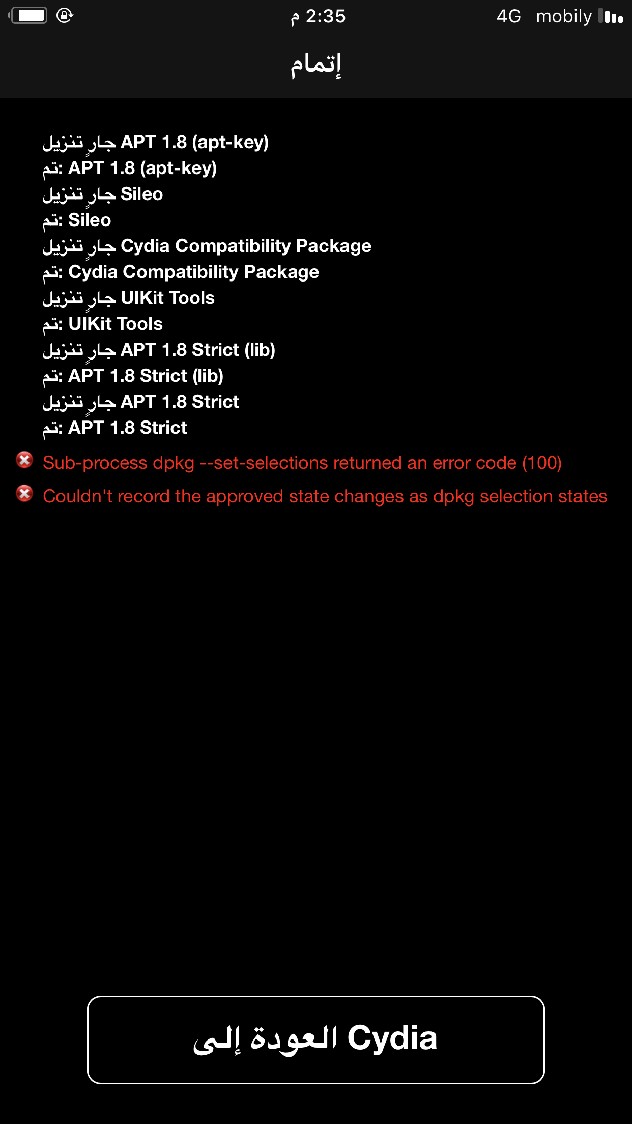 سويت كل شي لزالت المشاكل موجوده وصلت اخر حل الي حو انك تحذف اداه cydia Substrate م تنحذف يجيني اخطاء مثل مثل الصور المرفقه!