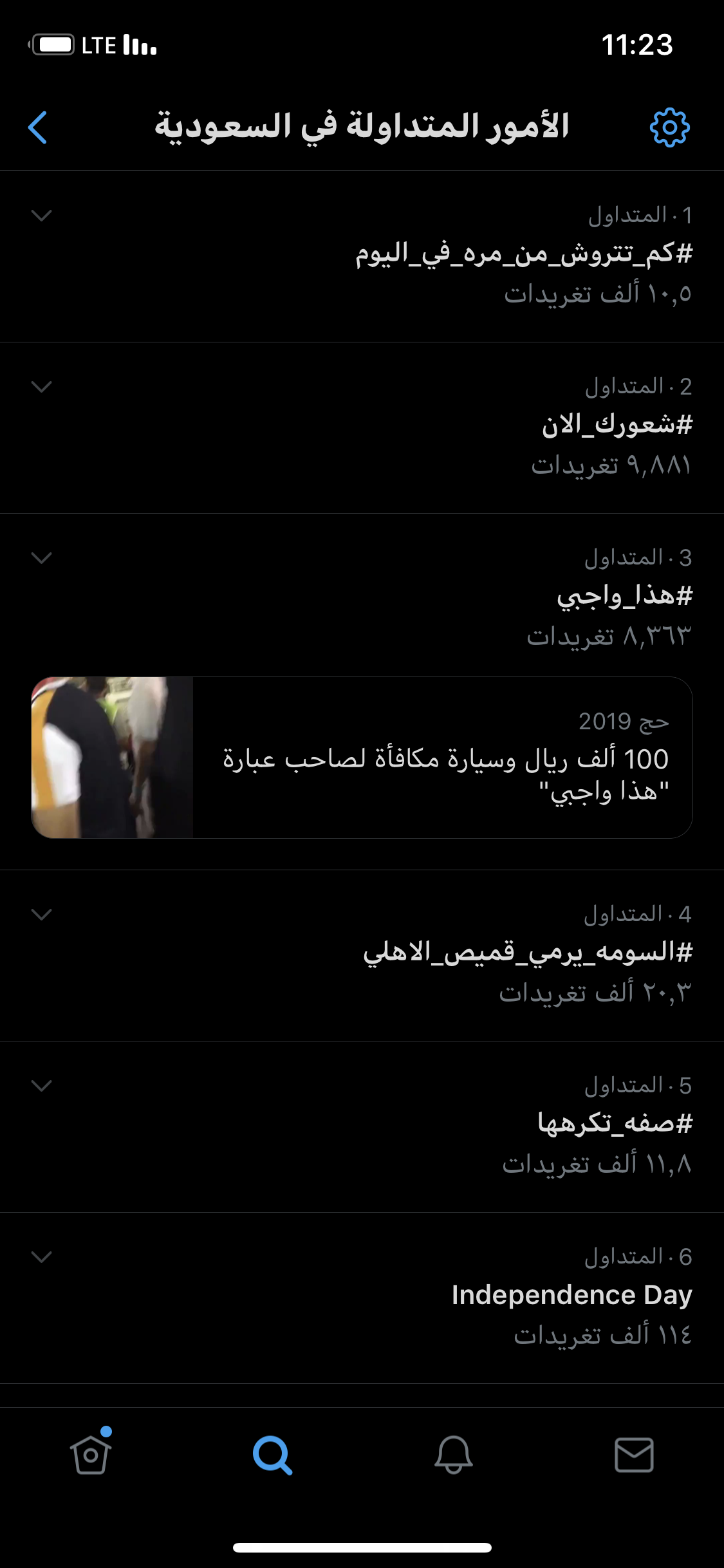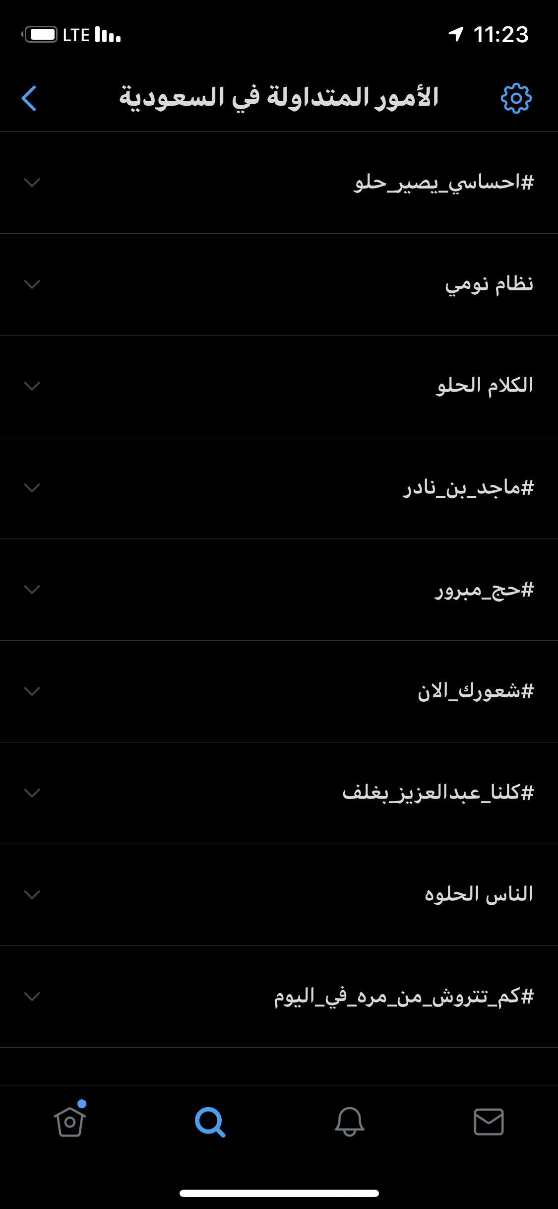 اضغط على الاعدادات الي فوق وغير منطقة الهاشتاق اذا كان اعدادات الهاشتاق مفعله على الهاشتاقات الخاصة بي غيرها الى اي دولة اخرى اما اذا كانت على السعودية فعل خيار الهاشتاقات الخاصة بي