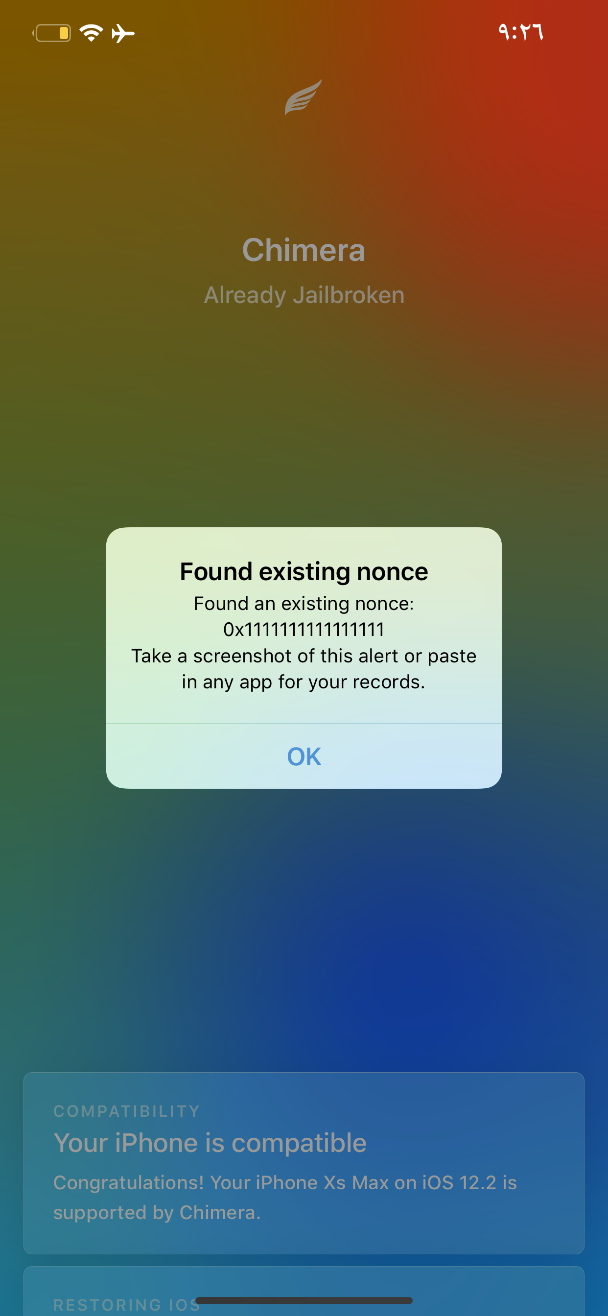 الإستفسارات 27347 حاولت احمل جيلبريك chimera ورفض يفعل مدري ليه مع العلم اصداري 12.2 و نوع الجوال iPhone xs max وش الحل ؟ والان ارفق لكم صورة الخطأ نوع الجهاز: iPhone xs max اصدار الجهاز: 12.2 هل الجهاز يحتوي على جيلبريك؟: لا صورة توضيحية للسؤال: الجواب: جلبريك Chimera مايدعم 12.2 للاجهزة هذي فقط من 12.0 ل 12.1.2 حمل Unc0ver يدعم تمت الإجابة منذ 7 سنوات 0 0