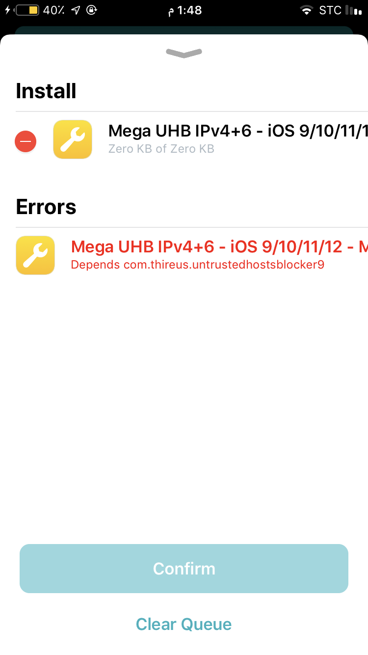 الإستفسارات 27983 تعثر تركيب اداة mega نوع الجهاز: ايفون 8 اصدار الجهاز: 12.1.2 هل الجهاز يحتوي على جيلبريك؟: نعم صورة توضيحية للسؤال: الجواب: برفق لك سورس ضيفه وبعدها ثبت الاداة https://www.ios-repo-updates.com/repository/thireus/package/com.thireus.untrustedhostsblocker9/ https://www.ios-repo-updates.com/repository/thireus/package/com.thireus.untrustedhostsblocker9/ تمت الإجابة منذ 6 سنوات 0 0