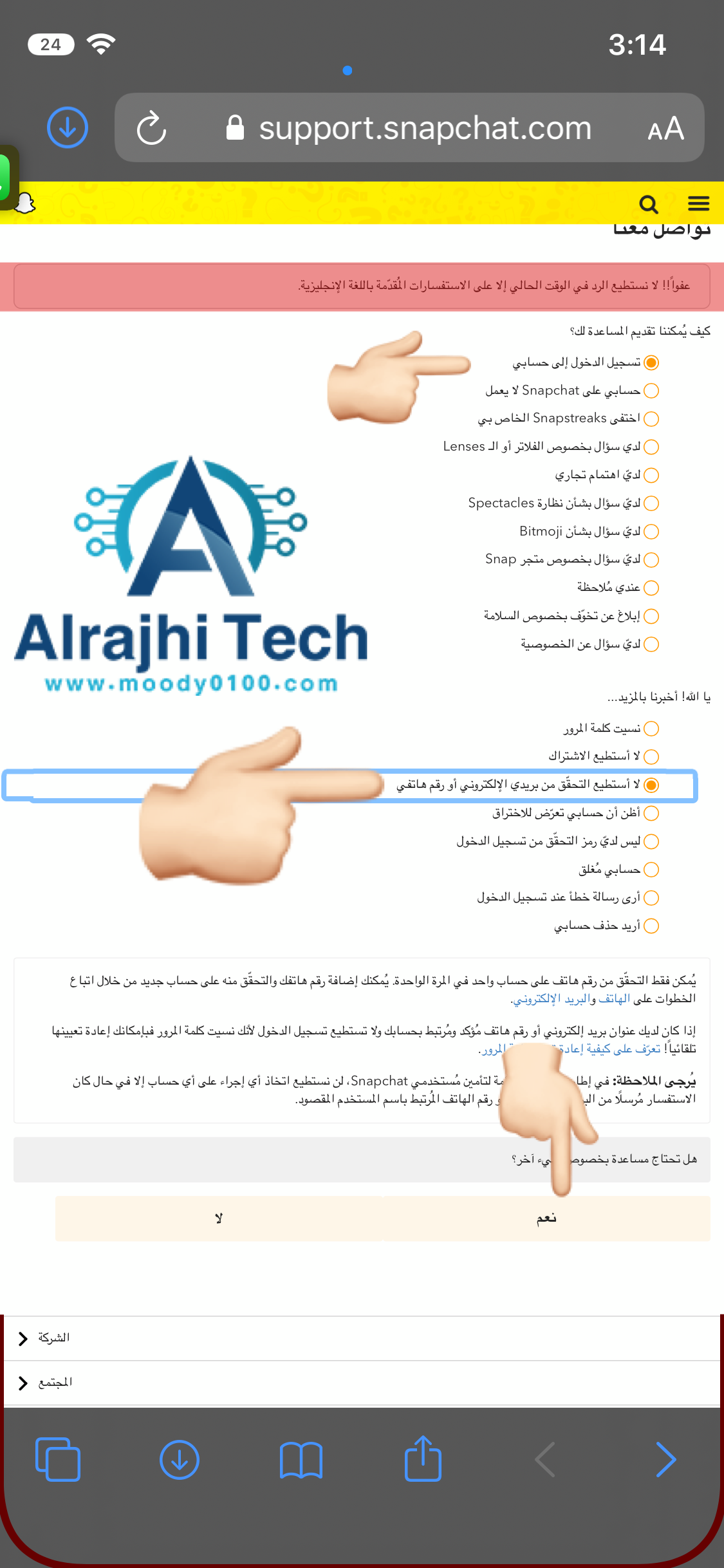 https://support.snapchat.com/ar-AA/i-need-help?start=4884712610856960