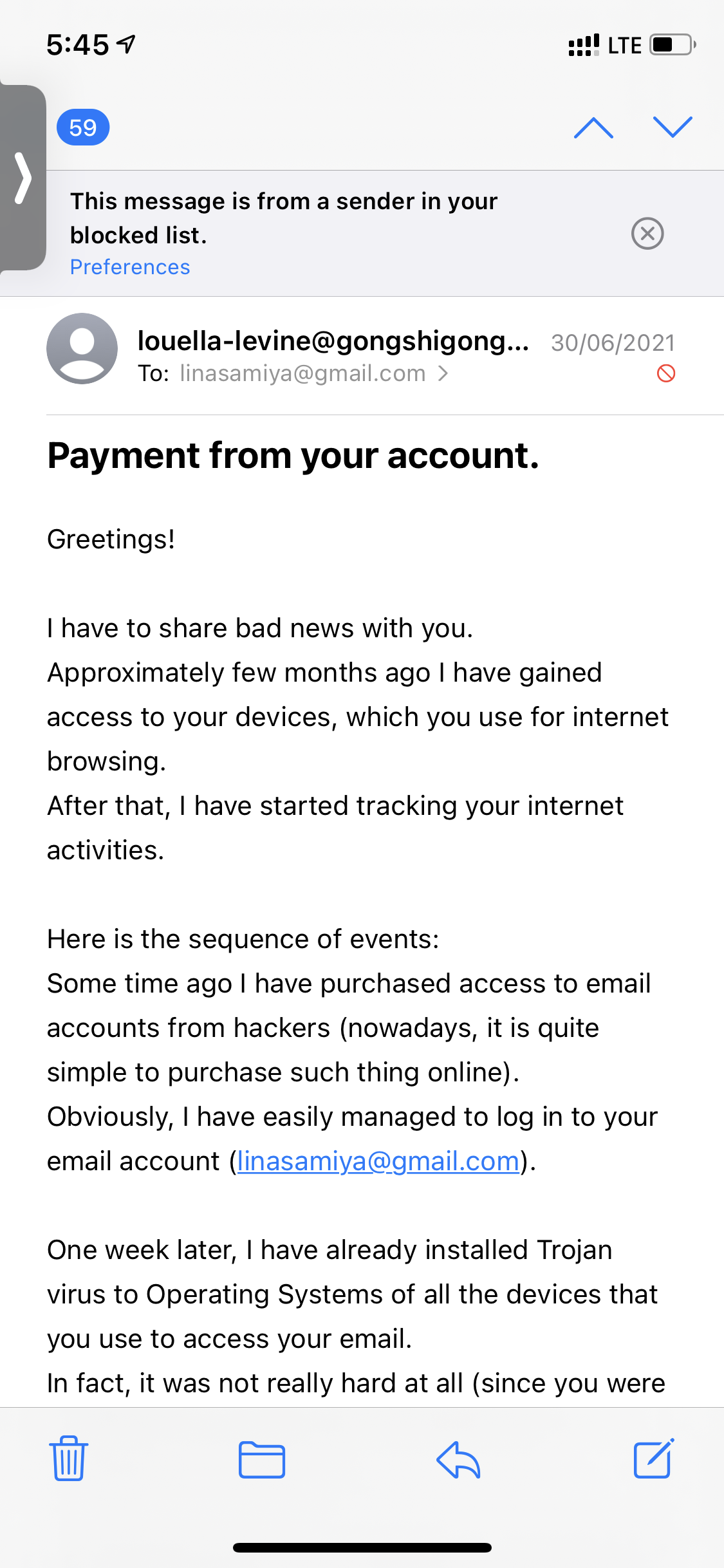 الإستفسارات 45694 جاني إميل تهديد هل هو صدق جالس يطلبني ١١٦٥٠ دولار ويقول فيه انه هكر جوالي واخذ صوري وارقامي وصورني شخصيا هل هذا صحيح نوع الجهاز: ايفون اكس اس اصدار الجهاز: ١٤ هل الجهاز يحتوي على جيلبريك؟: لا صورة توضيحية للسؤال: الجواب: غير تصحيح تجاهل الرسالة تمت الإجابة منذ 5 سنوات 0 0