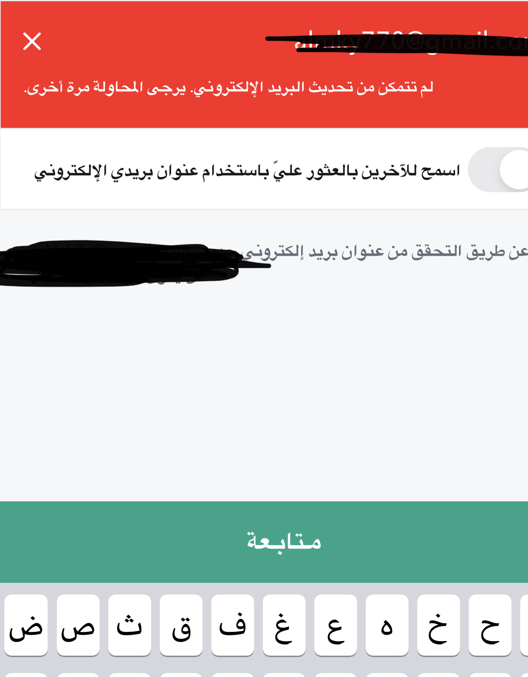 وجرب اميل اخر واذا مصر ع الاميل تواصل مع دعم شناب شات