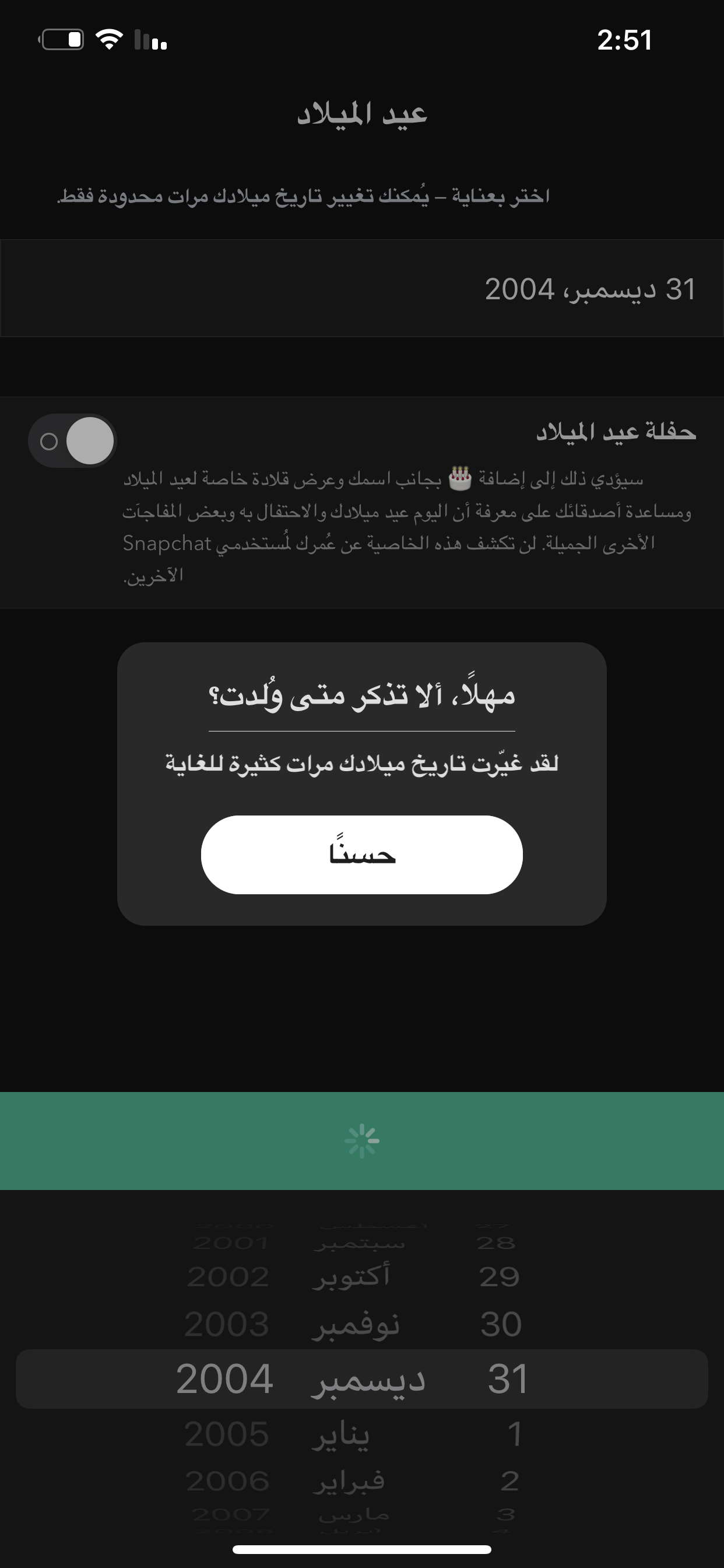 مالك الا انك تتواصل مع الدعم لأنك غيرت تاريخ الميلاد اكثر من مرة