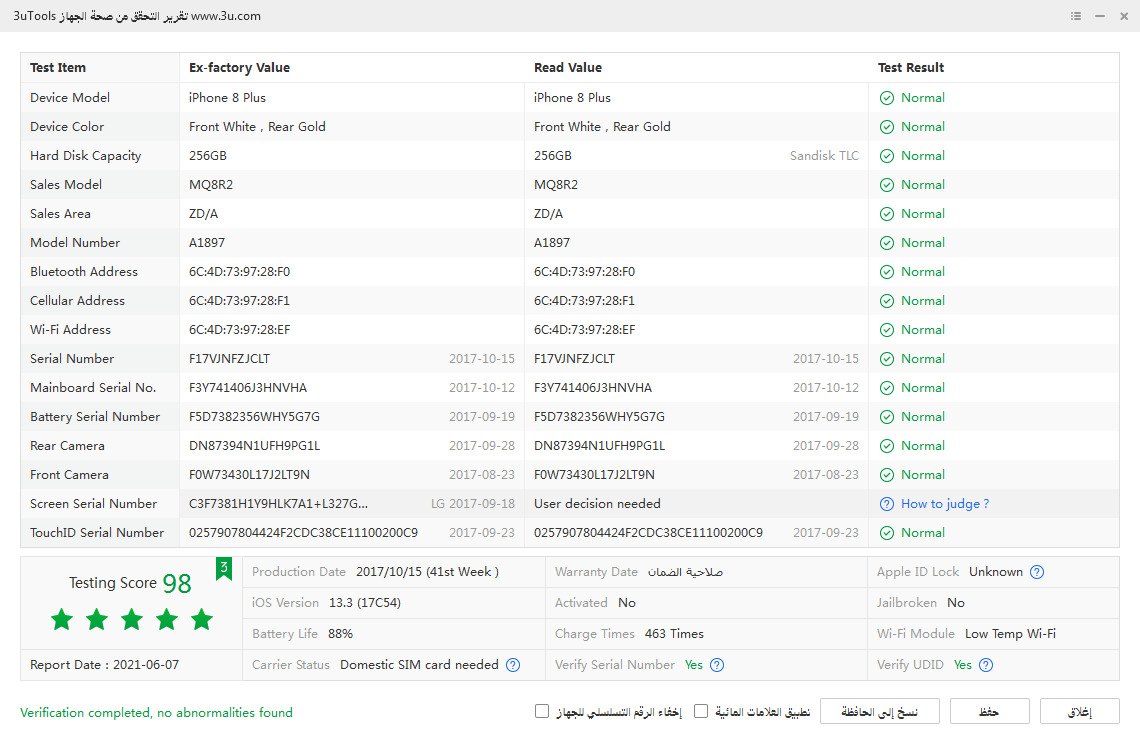 نوع الجهاز: ايفون 8 باس