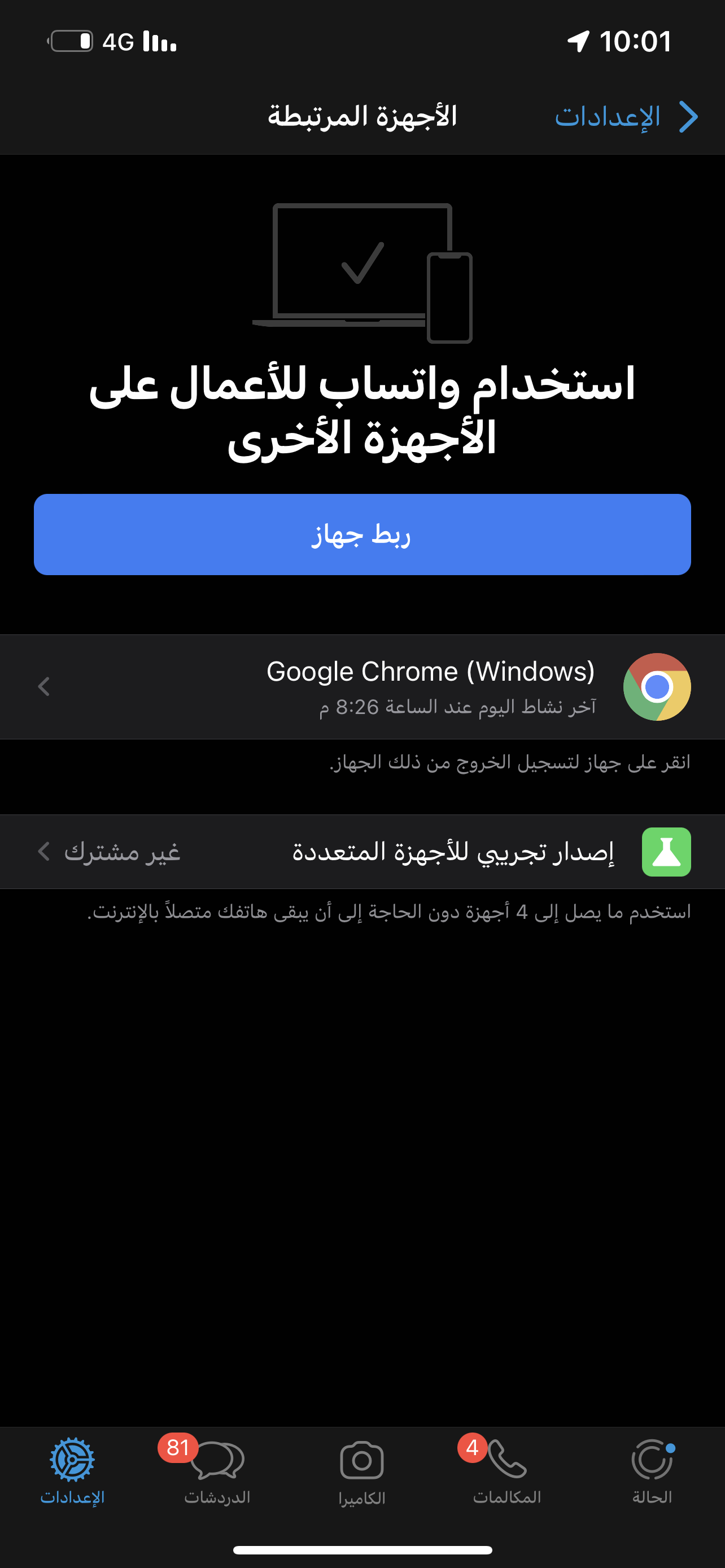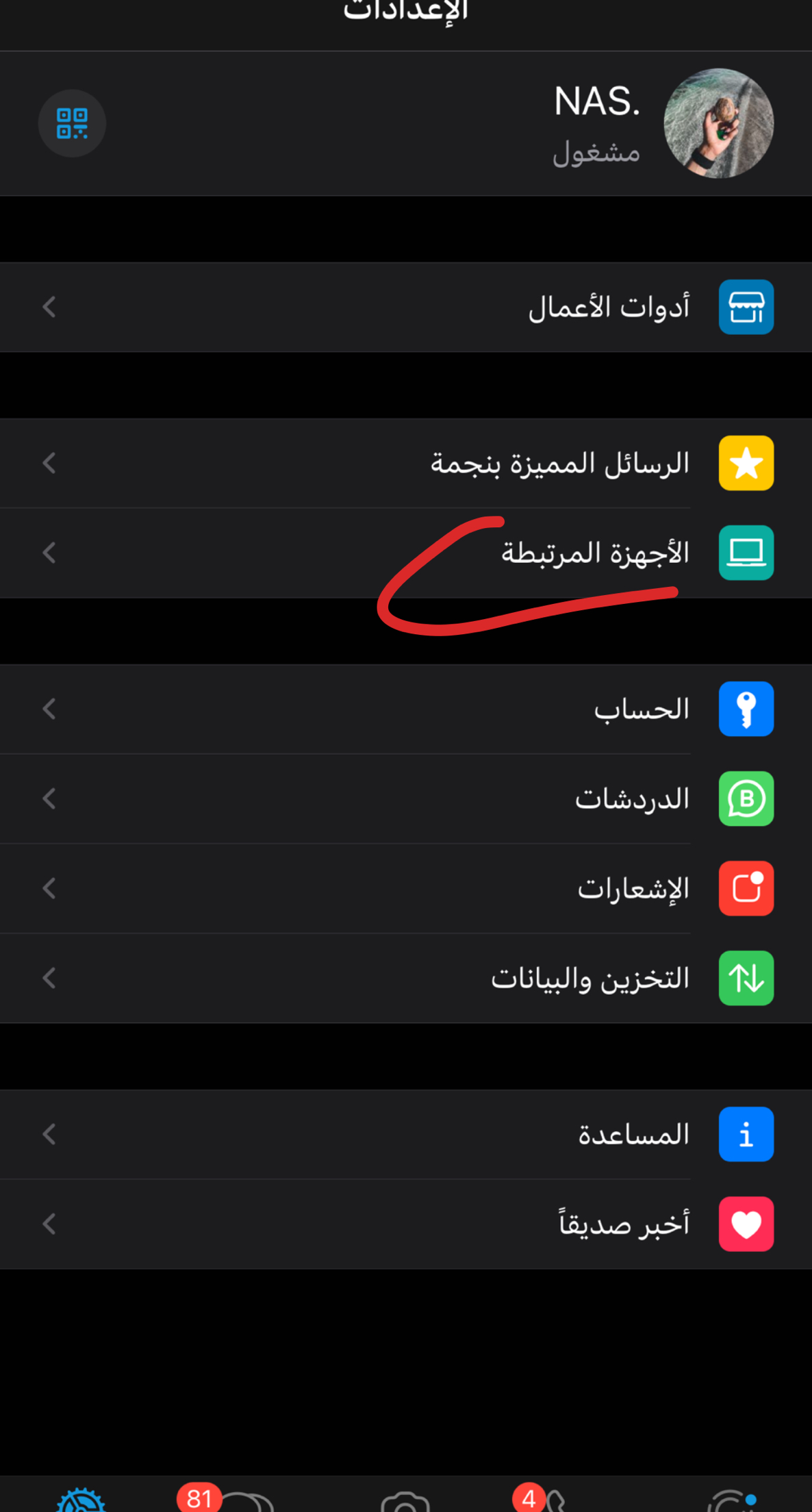 توجه الى اعدادات الواتساب تجد خيار الاجهزة المرتبطة مثل ماهو موضح في الصورة اذا في شخص يراقبك بتحصل نوع الجهاز اضغط عليه وسوي تسجيل خروج اذا ماحصلت شي يعني ان شاءلله مافي احد يراقبك وبنسبة اذا الرقم باسم شخص مايقدر لازم رسالة توصل على الرقم عشان يدخل الواتساب