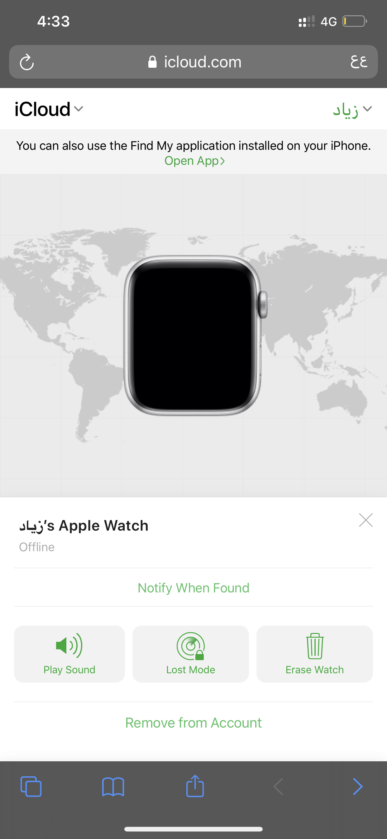 اذا كنت مطفي العثور على الايفون فما اتوقع تحصلها + ان الساعة لو ضايعه داخل البيت ما يحدد لك اي مكان بس تقدر تصدر صوت منها وتصير تزعج الى تحصلها