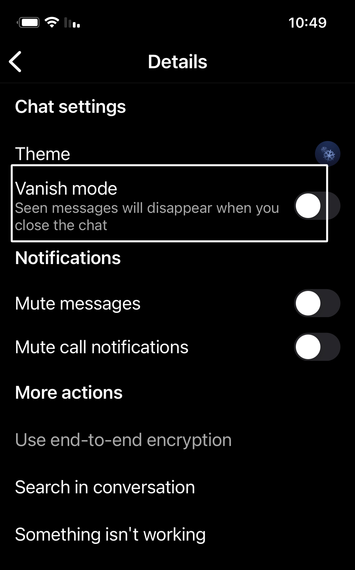 هذي ميزة بالانستجرام اذا فعلتها الرسائل تنحذف تلقائي، من هذا الزر تشغلها وتغلقها او اسحب الشاشة للأعلى داخل المحادثه بتتفعل/ تتقفل