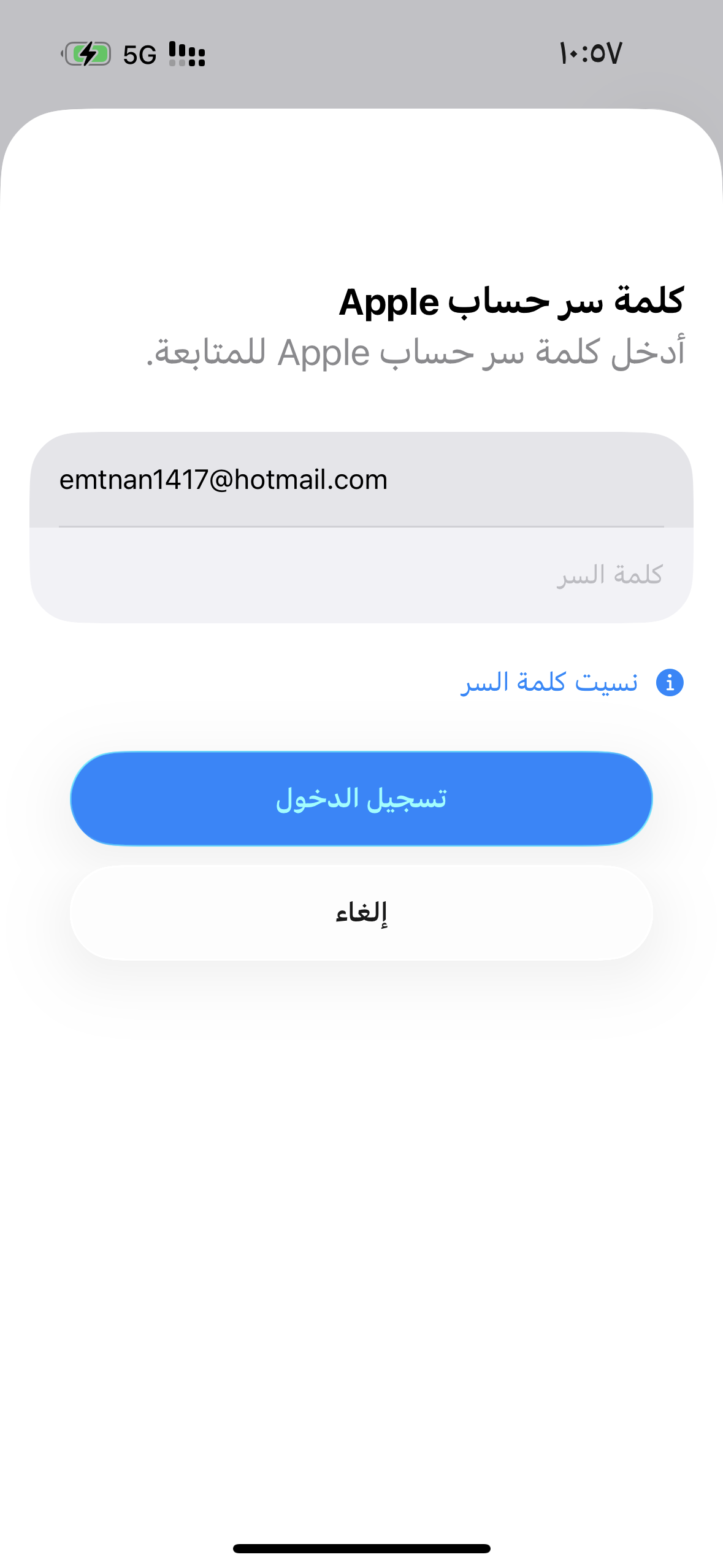 الإستفسارات 56751 نسيت كلمة سر حساب الـ apple واذا ضغطت على نسيت كلمة المرور يطلع لي رقم مو رقمي ماقدرت ارجع حسابي والايميل مااعرف منه شي نوع الجهاز: ايفون اصدار الجهاز: 15 هل الجهاز يحتوي على جيلبريك؟: لا صورة توضيحية للسؤال: الجواب: حياك بهالحاله تتواصل مع دعم ابل يغيرون لك الرقم الموجود تمت الإجابة منذ شهر الإجابة من: وضحى العتيبي _______لا تنسى تقييمي: 1 0