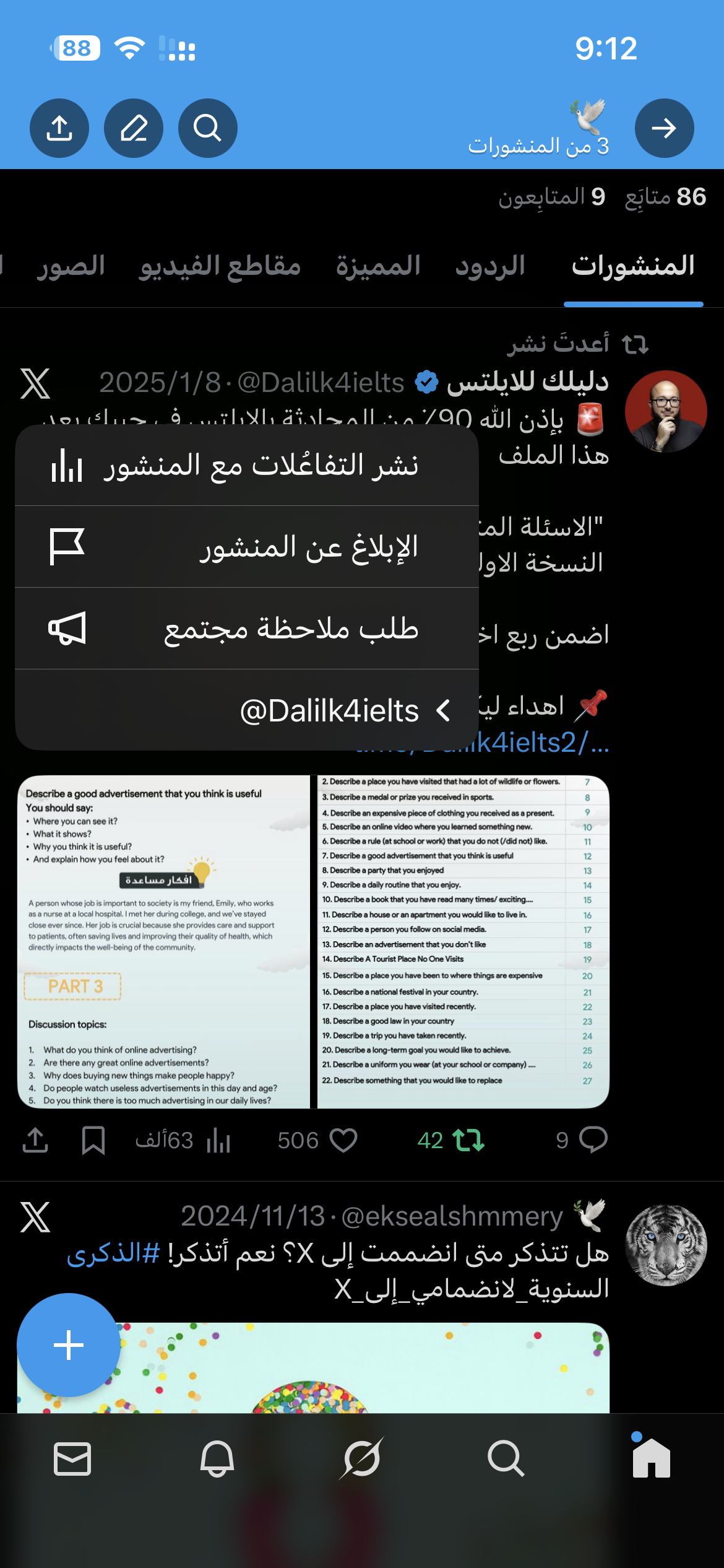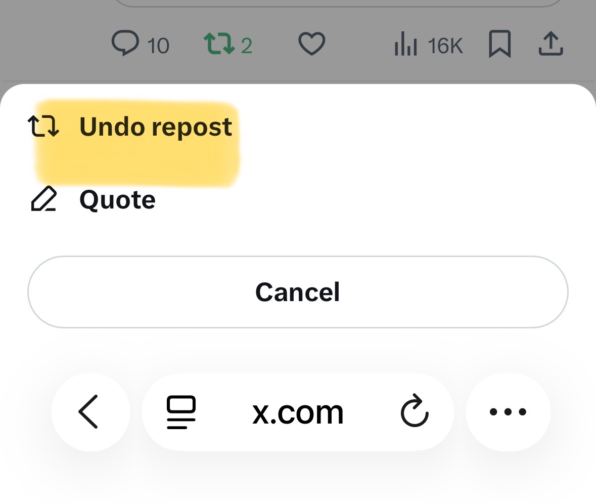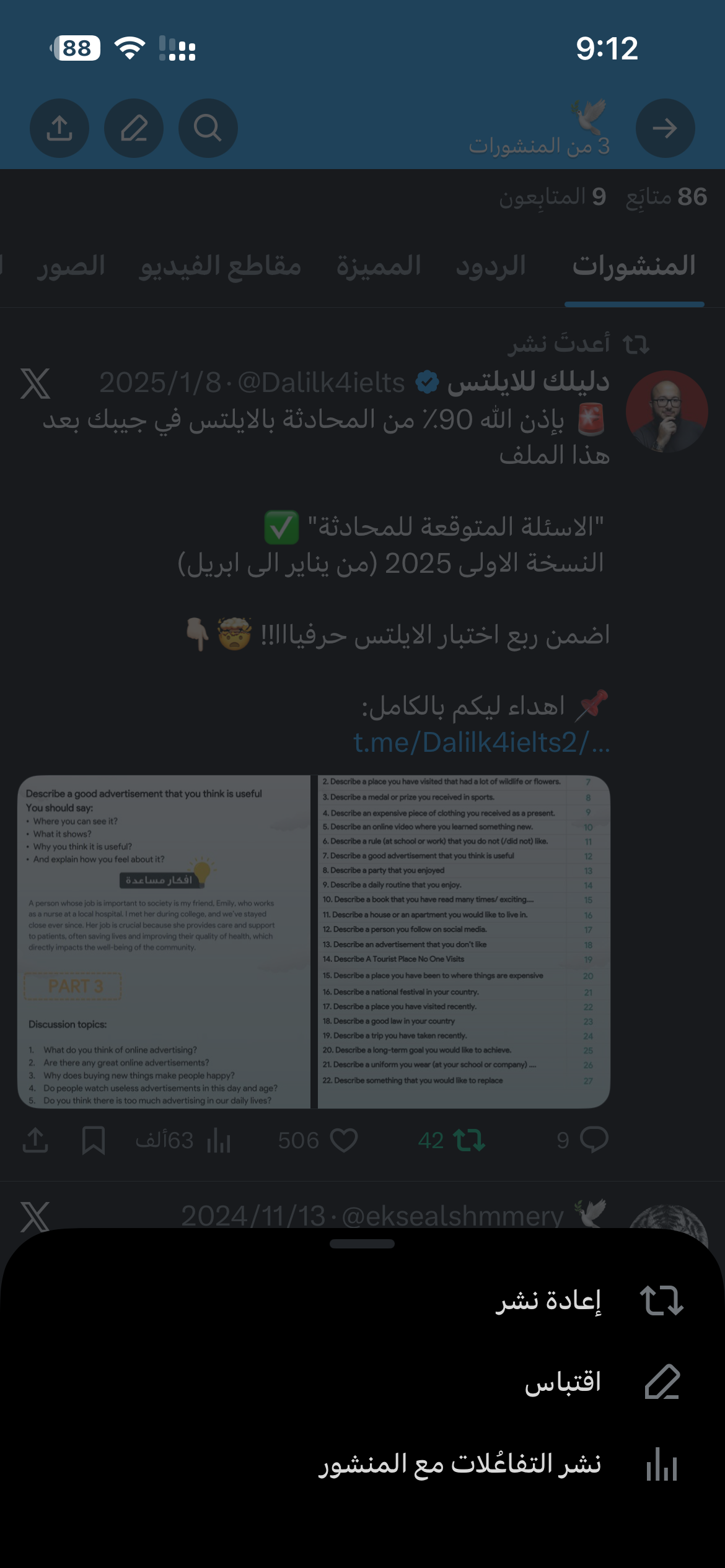 خلاص شكرا ضبطت معي دخلت عن طريق المتصفح لحسابي وطلع لي خيار تراجع عن اعادة النشر