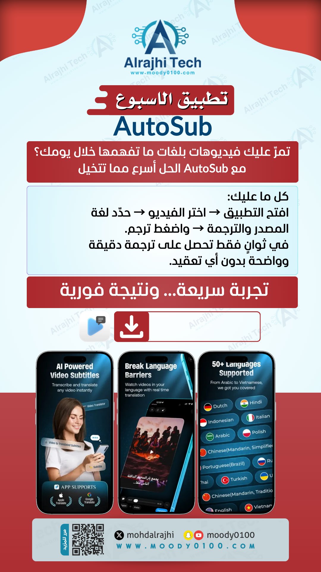 إضافة خبر الكل #جديد_التطبيقات #Apple #أدوات_الذكاء_الاصطناعي #تطبيقات_التواصل_الإجتماعي #منتج_الأسبوع #تطبيق_الأسبوع تطبيق الأسبوع - AutoSub منذ أسبوع ياسين #تطبيق_الأسبوع لتحميل تطبيق AutoSub : https://mub.me/XU8