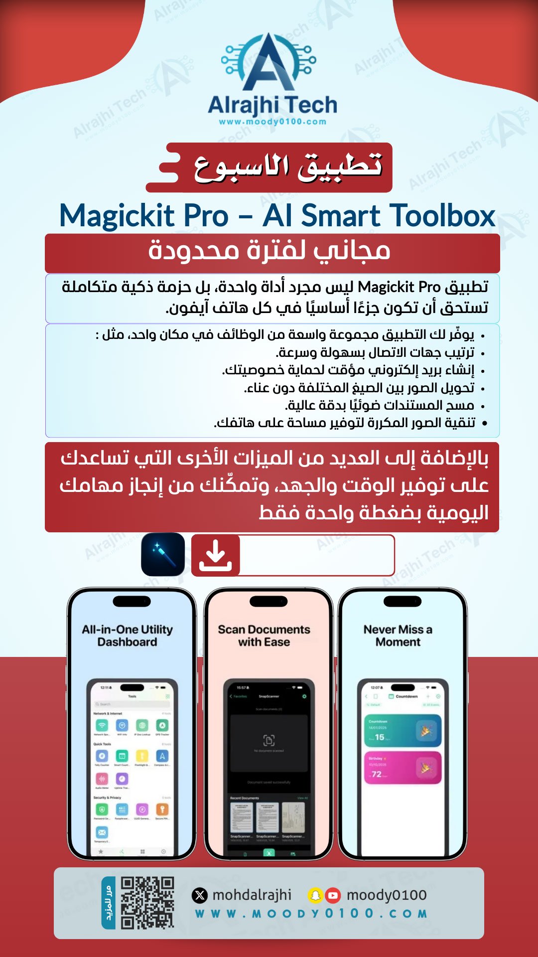 إضافة خبر الكل #جديد_التطبيقات #Apple #أدوات_الذكاء_الاصطناعي #تطبيقات_التواصل_الإجتماعي #منتج_الأسبوع #تطبيق_الأسبوع تطبيق الأسبوع - Magickit Pro منذ 3 أيام ياسين #تطبيق_الأسبوع لتحميل تطبيق Magickit Pro: https://mub.me/LAL