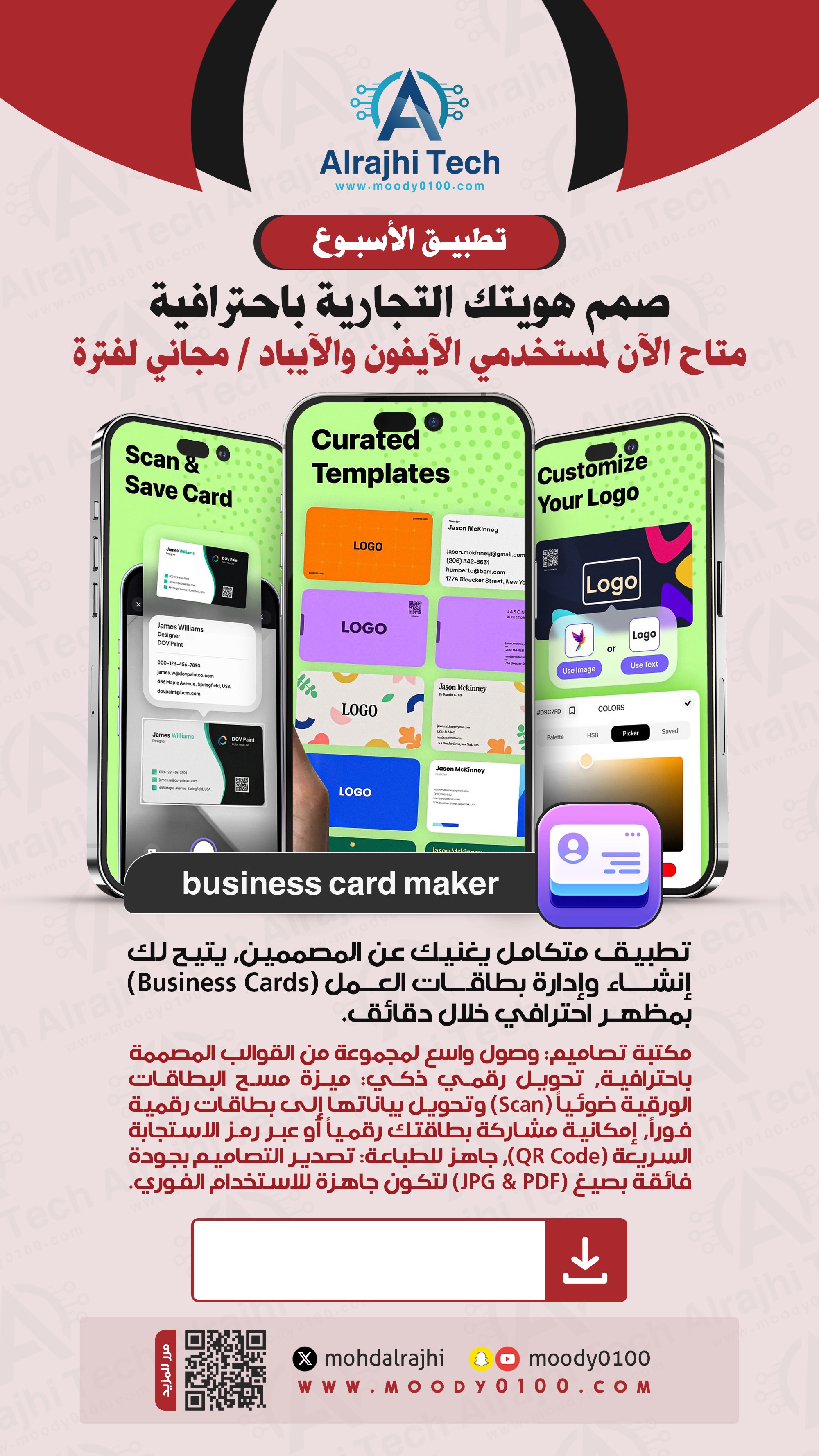 إضافة خبر الكل #جديد_التطبيقات #Apple #أدوات_الذكاء_الاصطناعي #تطبيقات_التواصل_الإجتماعي #منتج_الأسبوع #تطبيق_الأسبوع تطبيق الأسبوع - Business Card Maker منذ أسبوع ياسين #تطبيق_الأسبوع لتحميل تطبيق Business Card Maker : https://mub.me/1H3