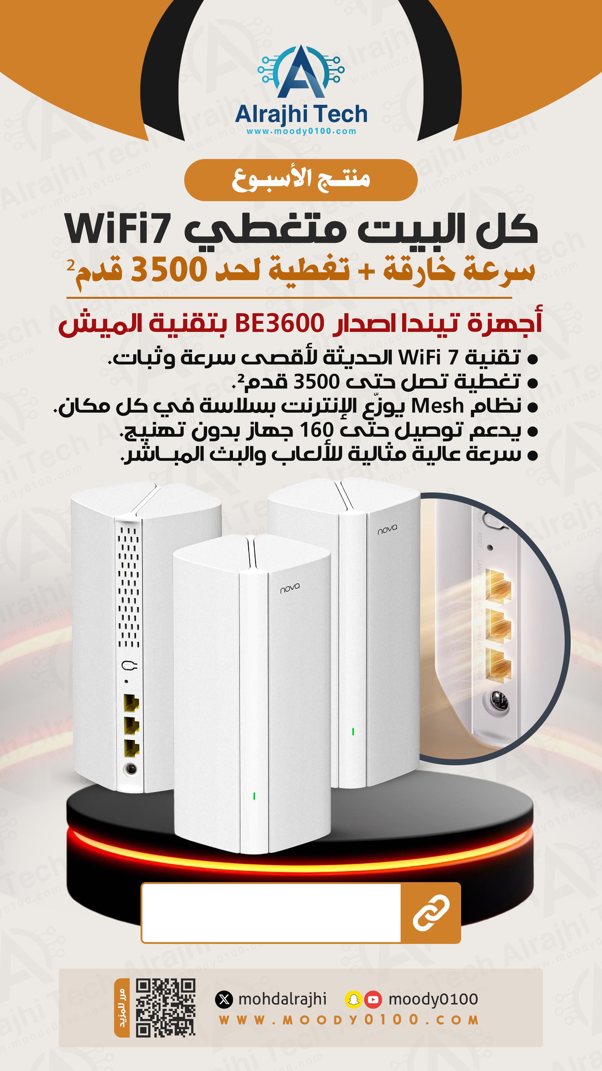 إضافة خبر الكل #جديد_التطبيقات #Apple #أدوات_الذكاء_الاصطناعي #تطبيقات_التواصل_الإجتماعي #منتج_الأسبوع #تطبيق_الأسبوع منتج الأسبوع - Tenda Wifi 7 Mesh منذ يوم ياسين #منتج_الأسبوع للطلب : https://mub.me/5p3